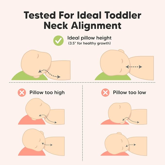 - Ergonomically Designed – The KeaBabies Toddler Pillow offers ergonomic support for healthy spinal alignment and all-night comfort. Note: Vacuum-sealed and may appear flat. Simply massage or cold wash and tumble dry low to restore its fluffiness after opening from package.