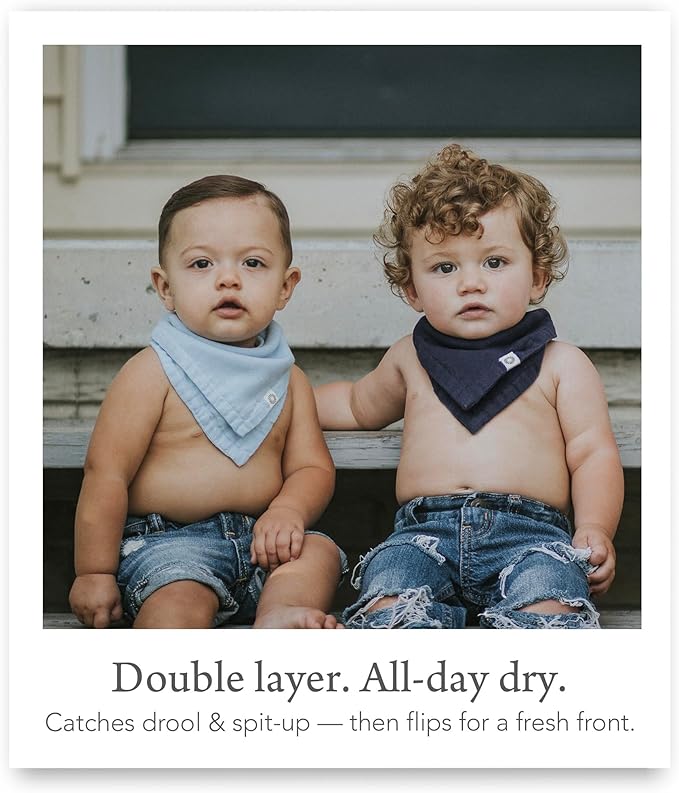 • MADE TO WEAR ALL DAY – Designed to drape like a scarf, not a bib. Our bandana drool bib catches spit-up and teething messes without hiding your baby’s outfit — soft, breathable, and stylish enough to leave on between meals.