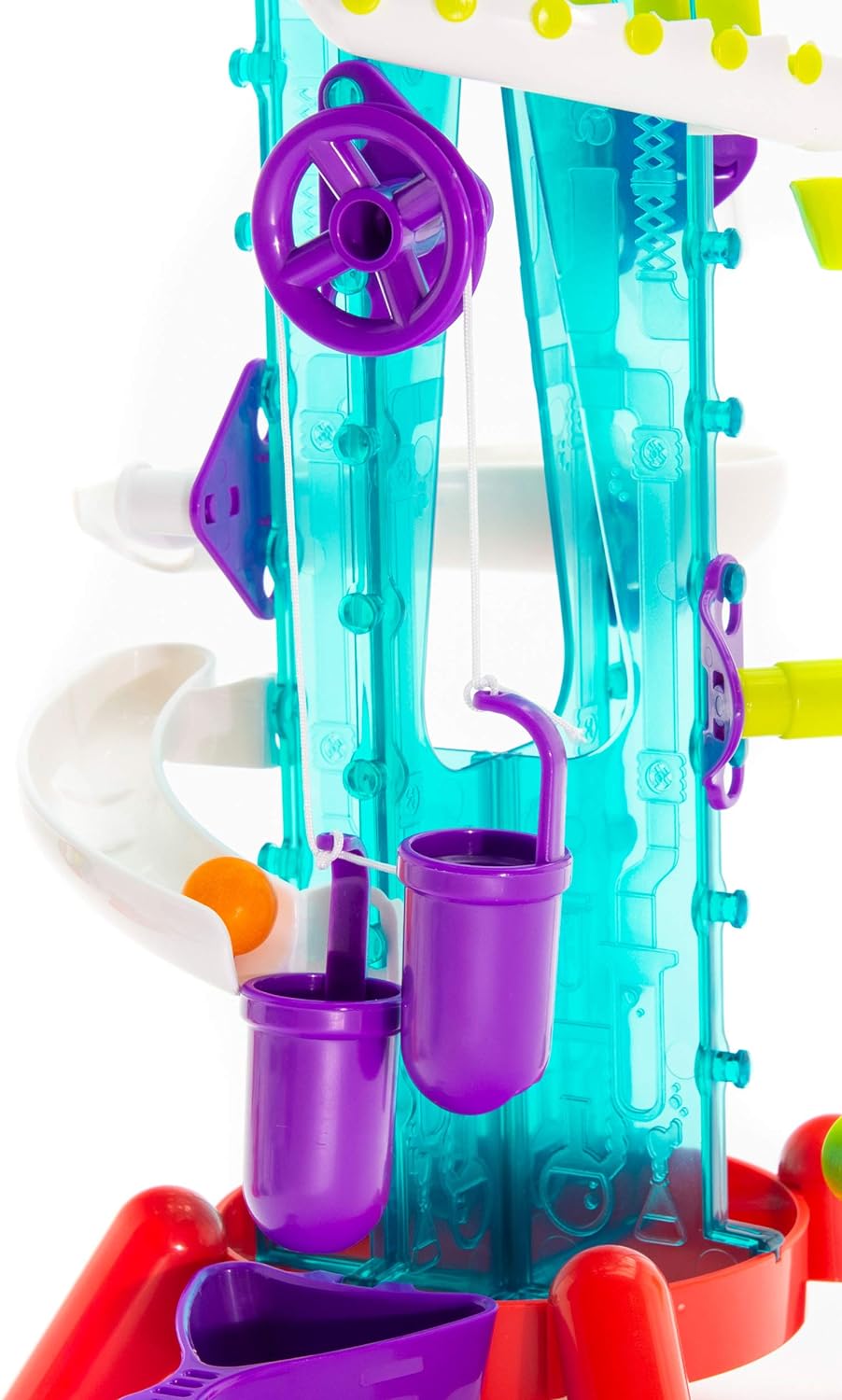 - As they roll down the tracks, the gumballs perform cool stunts via a pulley lift, pendulum, funnel, trampoline, pinball launcher, domino slide, and more!