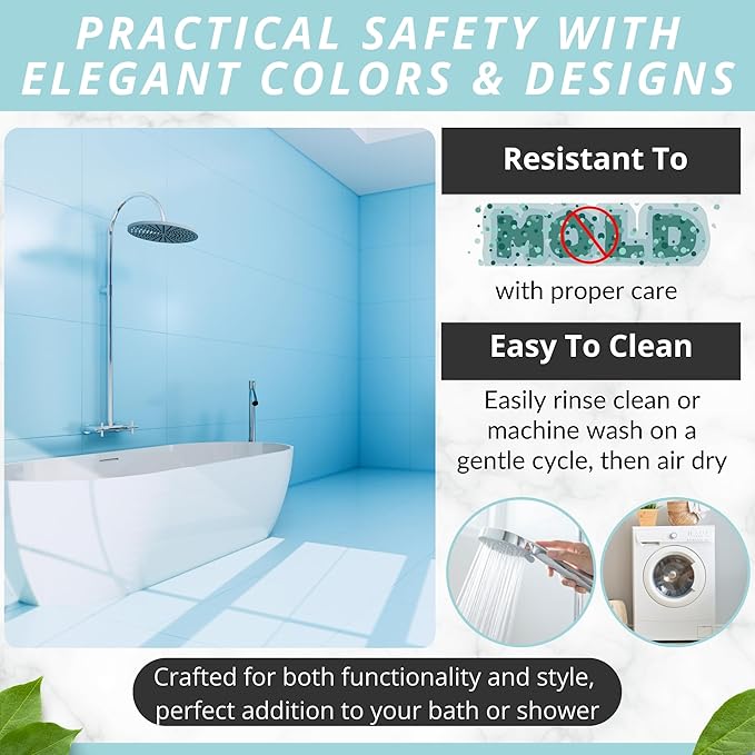 - Modern, Sturdy & Made To Last: Complement your stylish bath rugs décor with an eye-catching bath mat in many color variations. Place it in the washing machine, to keep it fresh, clean and hygienic for a long time!