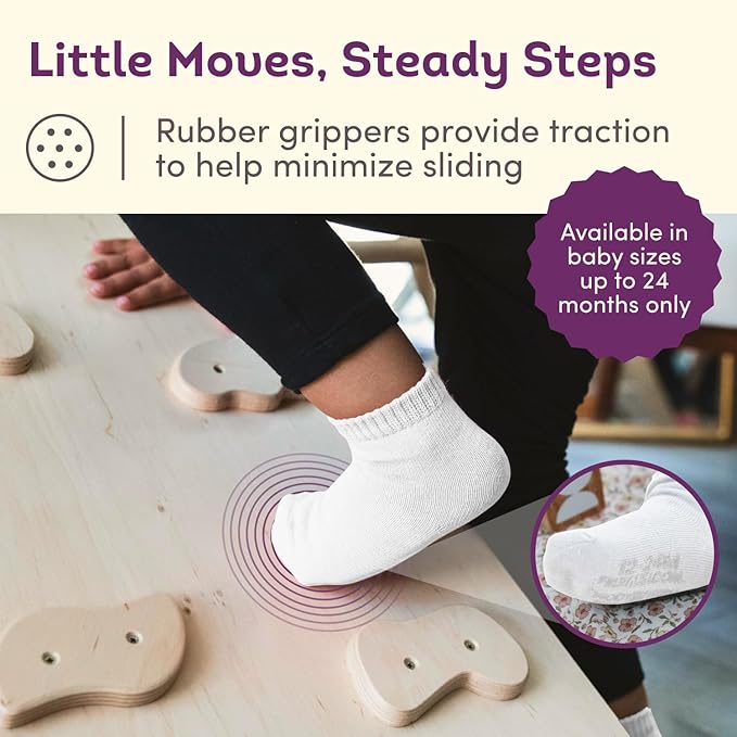 - NON-SKID GRIPPERS: Featuring grippers that provide traction to help minimize your little one from slipping. These are available in sizes up to 24 months but do not come in sizes 2 years and up.