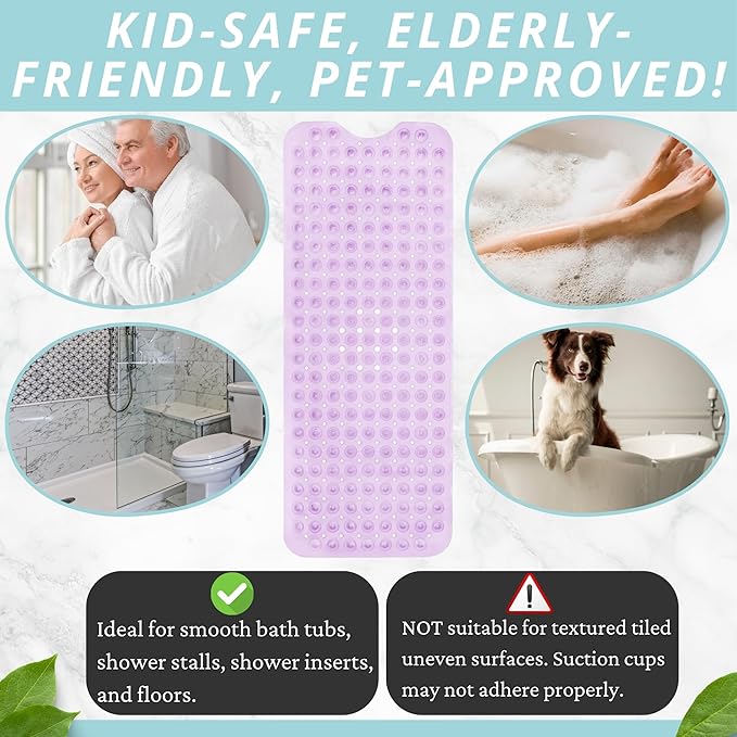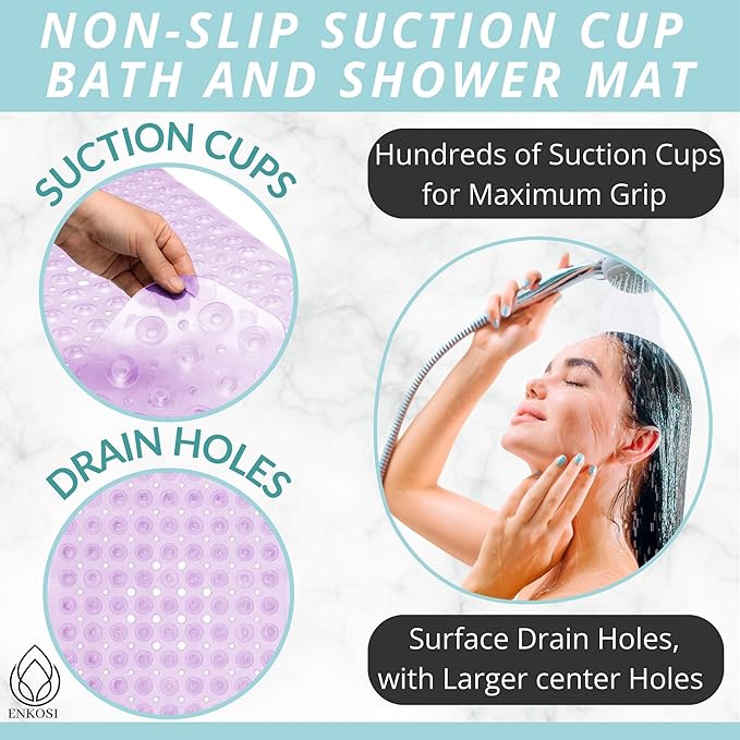 ENKOSI Bath Mat - Large Non Slip Bathtub & Shower Mat - Extra Long 40 x 16 Inch Bathroom Mats for Tub Nonslip Anti Slip Bathmats (40x16 Clear Purple 1-Pack)