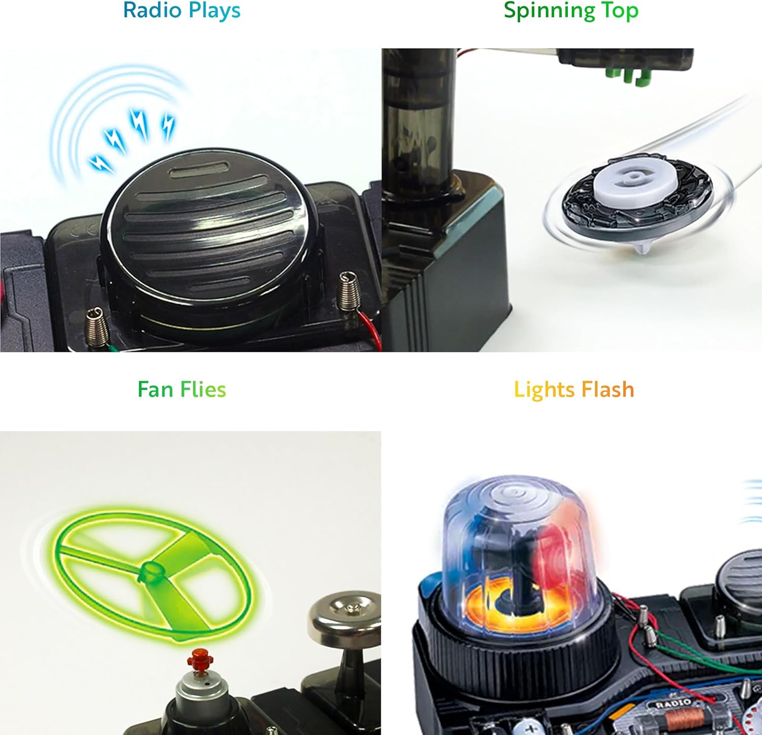 - OVER 328 HANDS-ON EXPERIMENTS - Children ages 8 and older will be able to experience a real science and electronics center at their fingertips. Over 328 experiments will provide unlimited hours of challenging fun for students. Kids will have a blast connecting things like a AM/FM radio, a flying fan, animal sounds, a doorbell, LED lights, and many more!