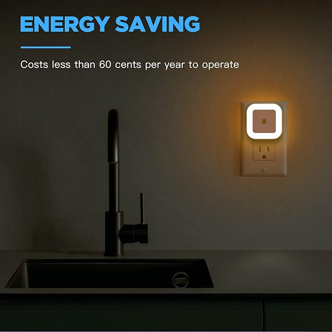 - Energy-saving and Money-saving: Our night-lights are energy-efficient thus it will help you cost less than $0.60 per year to operate (based on 11 cents/kWh). It also helps you do a favor on climate change. And, it has a LED lifespan of 10,000+ hours. No need to replace bulbs