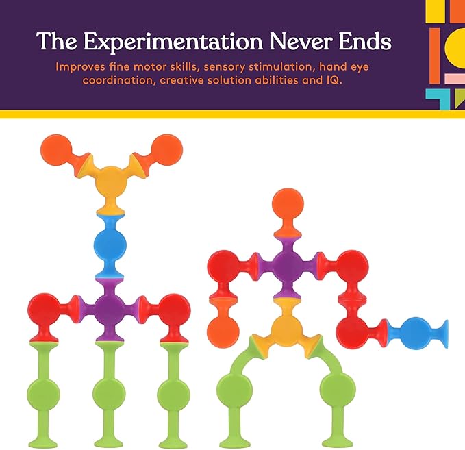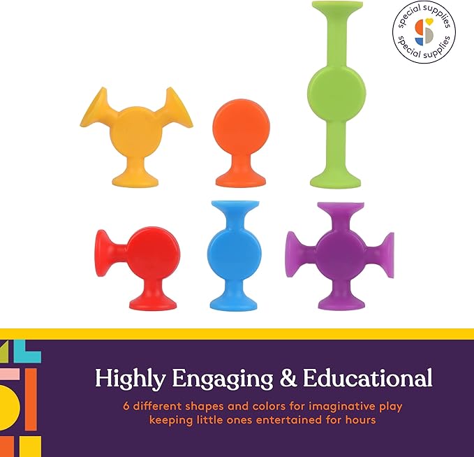 - THE EXPERIMENTATION NEVER ENDS: Let your little ones explore a colorful and imaginative set of 50 mini suction toys that will keep them entertained for hours on end! Build all sorts of creations, engage your imagination and enjoy the endless possibilities with 6 different shapes.