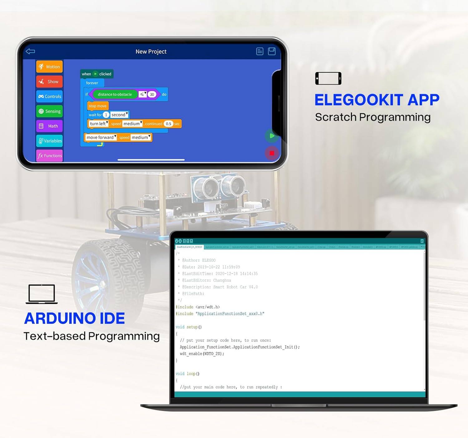 - Tumbller is a newly design for Arduino project of robotic car kit which has multiple fascinating functions like auto-follow, obstacle avoidance, bouncing mode and glowing in different LED colors and also you can control it with your mobile phone using our new ElegooKit APP.