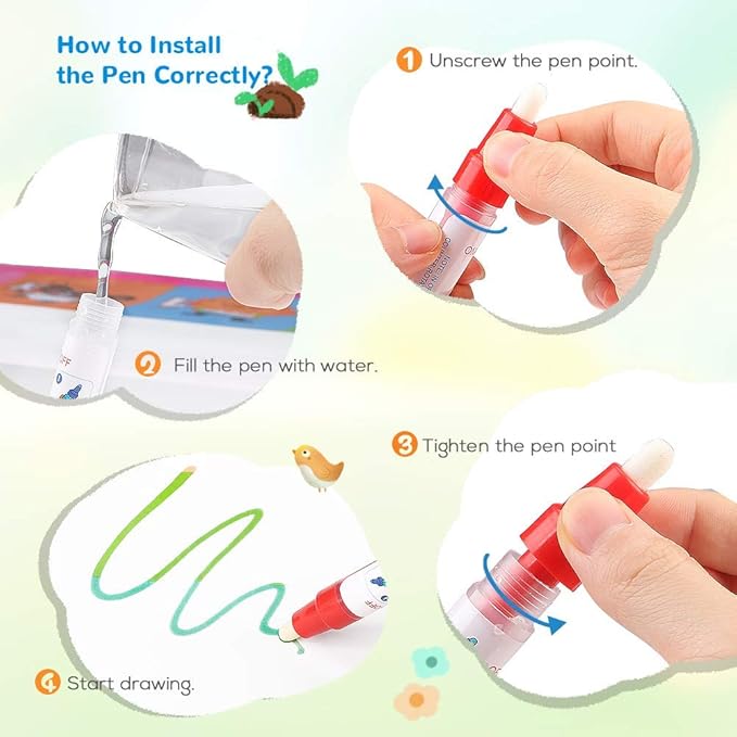 - Magic Drawing Mat: Reusable - Fill The Magic Pen With Clean Water And Draw On The Magic Drawing Mat. After 3-10 Minutes, It Magically Disappears (Depending On Temperature And Airflow), And Children Can Paint On The Drawing Mat Again And Again.