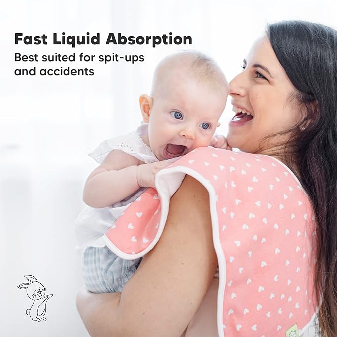 Organic Burp Cloths Baby Boy & Girl - 5-Pack Super Absorbent Cotton Burping Cloths for Babies, Soft & Plush Newborn Spit Up Rags, Infant Towels for Milk Spit Up, Unisex,Large 21" x 10"(Pink Dreams)
