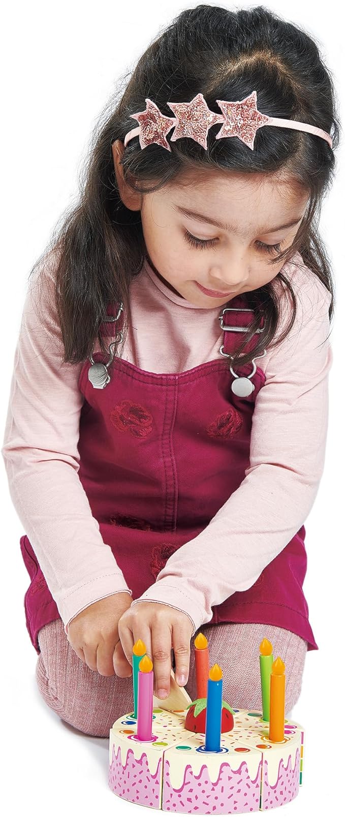Tender Leaf Toys - Rainbow Birthday Cake - Pretend Play Food Toy with Candles and Server, Birthday Party decoration or gift for kids - Develops Social Skills and Imaginative Play for Children - Age 3+