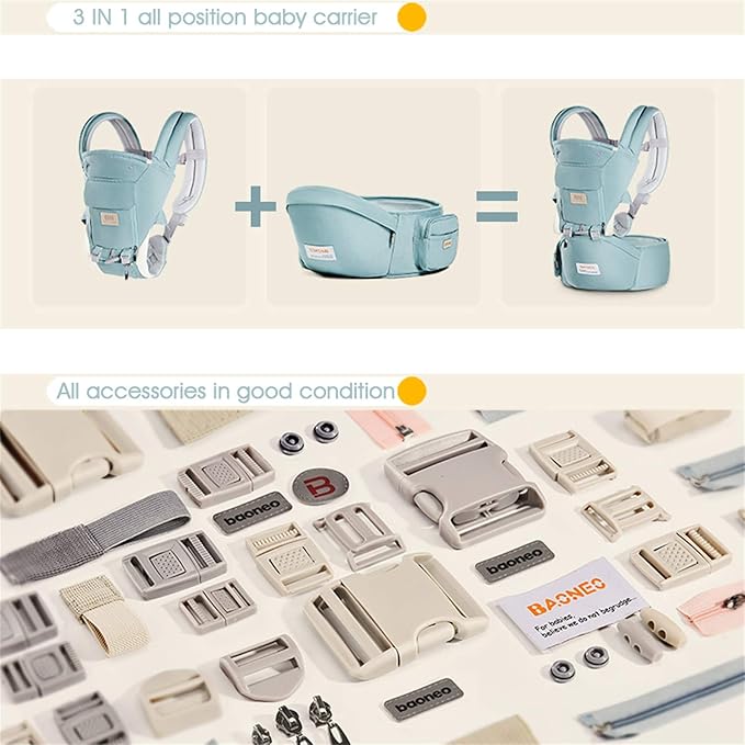 Ergonomic Baby Carrier with Hip Seat, 360° Positions, Soft and Breathable, All Seasons, for Newborns and Toddlers, Hiking Shopping Travelling