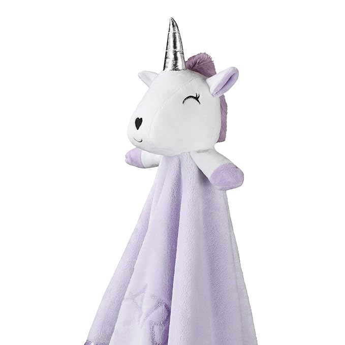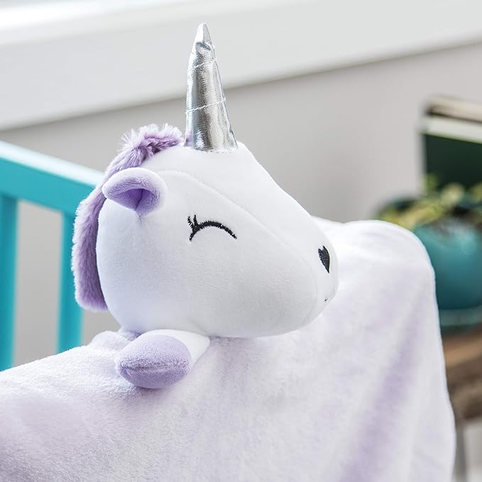 - HUGGABLE UNICORN BLANKEY: Designed with your little princess in mind, our mini unicorn blanket has a sparkly horn, adorable heart shaped nose, lush purple mane, and two little legs ready for hugs
