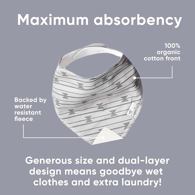 - MAXIMUM ABSORPTION: Fronted by ultra-soft Organic Cotton and lined with water-resistant polyester fleece to provide an extra layer of absorbency. Each bib is crafted with dual-layer protection against heavy drooling or spit-up, keeping your baby dry and comfortable.