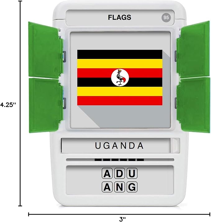 - POCKET-SIZED AND PACKED WITH FUN. Check out the anagram and open the four doors to unveil a country’s flag. Make a guess and then slide to reveal the answer.
