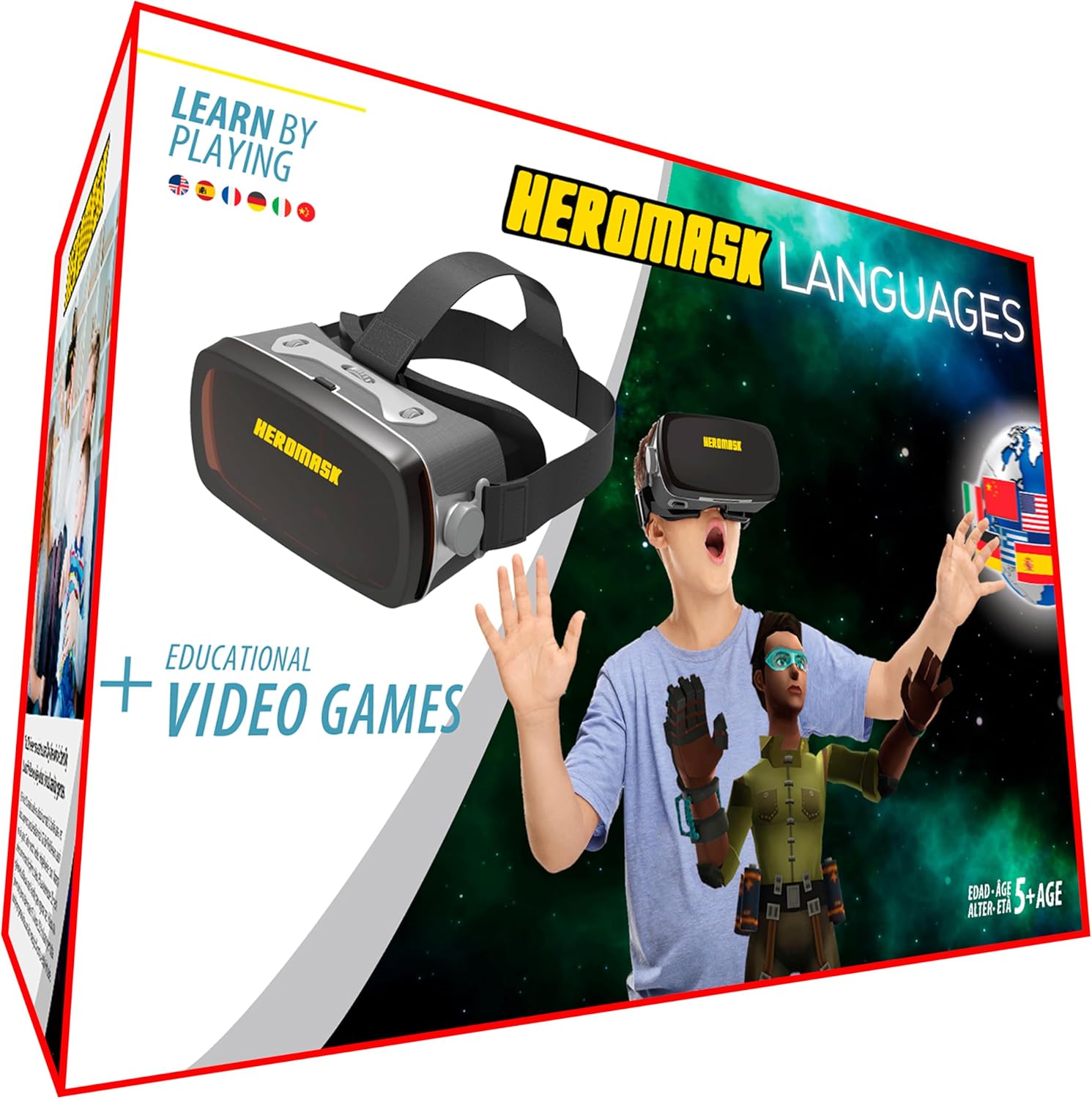 Heromask Virtual Reality Headset for Kids + Video Games to Learn Spanish Italian etc [Language Learning] VR for Kids. Kids Gifts for Boys and Girls for Age 5 to 12 Years Old. Educational