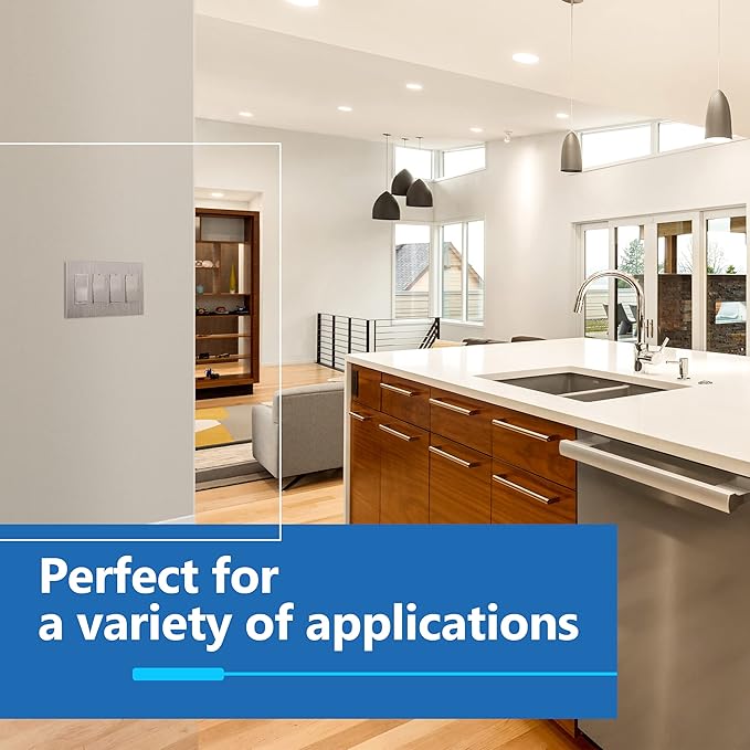LIDER Brushed Finish Decorator Switch Cover, Screwless Wall Plate, Mid-Size 4-Gang 4.88" x 8.58", Unbreakable Polycarbonate Thermoplastic, UL Listed, LSWP-34M-BNK, Brushed Nickel