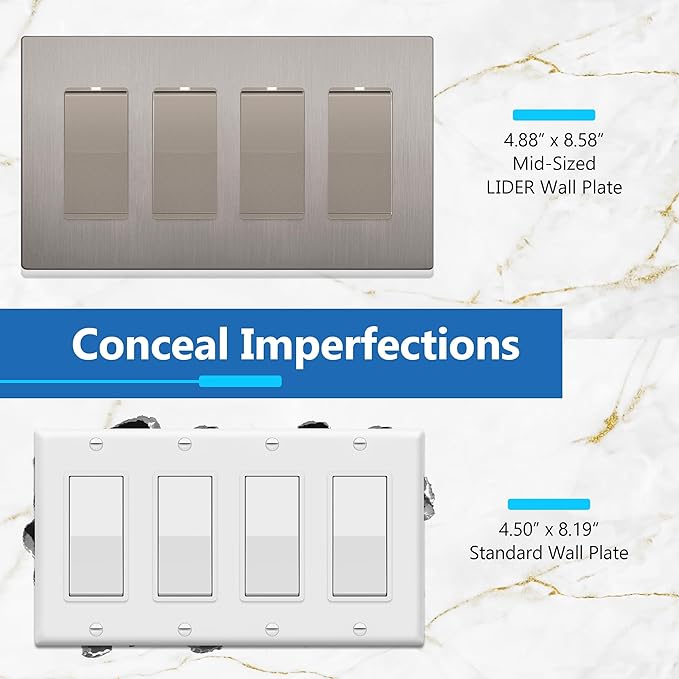 - LIDER brushed finish wall plates are compatible with decorator-style devices from a variety of brands, but LIDER products should be used to ensure the best fit and color match; products from other brands may not perfectly match in fit or color