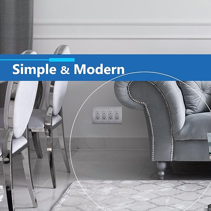 - Brushed Silver color; screwless cover for added child safety; flammability Ul94; V2 rating; 1-year warranty; UL-listed