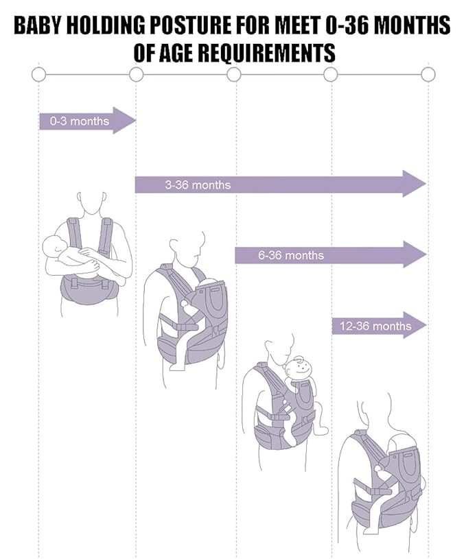 - This baby carrier features an adorable design and a durable material that can support your growing baby from 0 to 36 months (12-33 pounds/5.5-15kgs). You can choose from multiple ways to carry your baby, such as front-outward, front-inward, hiking, single strap, hip, and backpack. Whether you are going for a walk, a hike, or a shopping trip, you can find the best position for you and your baby.