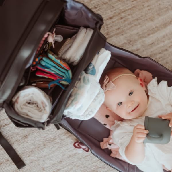 - Never Panic About Public Diaper Changes Again: The patented, integrated fold-out changing station transforms any surface into a clean, safe changing area in seconds. Whether you're at a restaurant table or navigating an airport terminal, this removable and machine washable pad eliminates the stress of finding facilities. No more scrambling when your little one needs a change, especially in restrooms without stations.