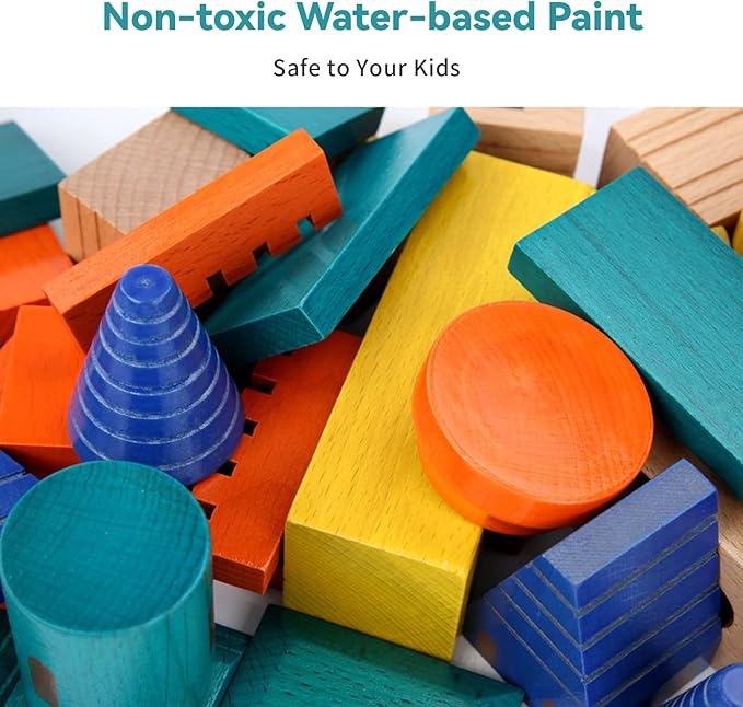 - Solid Wood Material and Safe Toys: Made from selected solid beech wood, water-based paint is mildly colored, smooth to touch without splinter safe to toddlers. Good size blocks are great for little hands to play with. Conforms to US Toy Standard, test approved