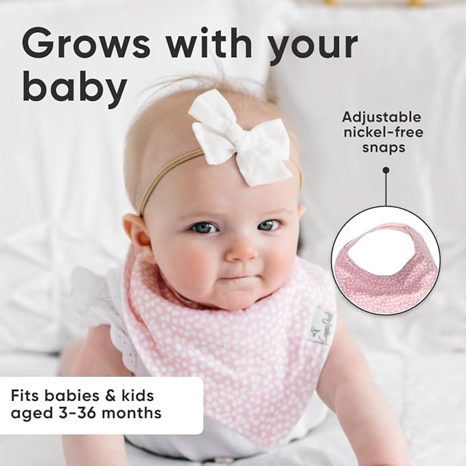 - GROWS WITH YOUR BABY: Each bib features two adjustable nickel-free snaps, allowing for a perfect fit from newborn through toddlerhood (3–36 months).