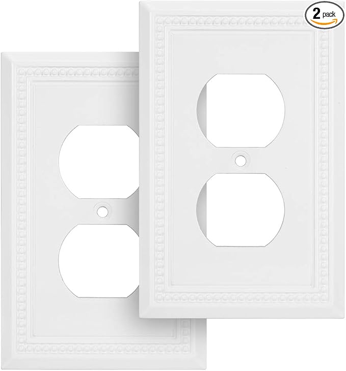Henne Bery Sunken Pearls Heavy Duty Decorative Wall Plate Switch Plate Outlet Cover (Single Duplex, 2 Pack, White)