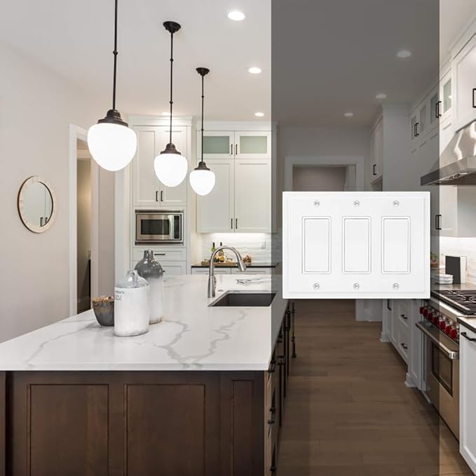 Modern Edge Decorative Wall Plate Switch Plate Outlet Cover, Durable Solid Zinc Alloy (Triple Decorator, White)
