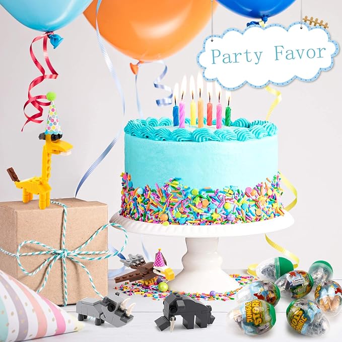- Animal figures: Set of 12 surprise eggs of animal figure puzzles; includes Hippo, Giraffe, Elephant, Lion, Rhino, and Eagle; two eggs each; unlimited imaginative fun for your little builders