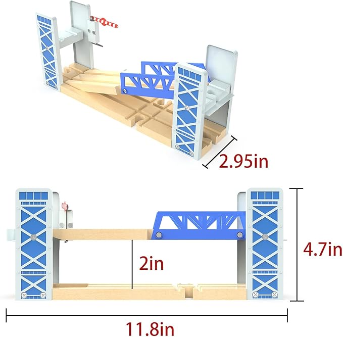 - Wooden train tracks accessories of lifting overpass bridge come with crossing tracks and bridge unit that moved up and down by barriers.