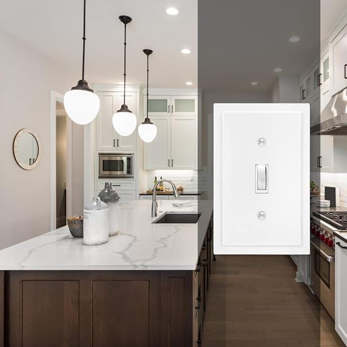 Modern Edge Decorative Wall Plate Switch Plate Outlet Cover, Durable Solid Zinc Alloy (Single Toggle 2PK, White)
