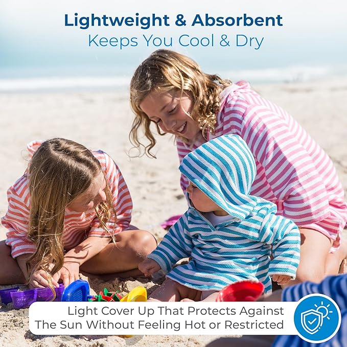 • PULL ON & GO - This swimsuit cover up and bathrobe is light and breathable which makes it a great kids bathrobe and beach towel for those times of year when you need to stay dry and cool