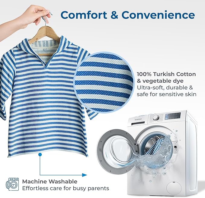 • SKIN SAFE & PROTECTS AGAINST UV RAYS - This 100% luxuriously soft Turkish cotton bathrobe for kids is comfy & blocks UV rays from head to knee and uses a vegetable dye that is OEKO-TEX certified so that no harsh chemicals will ever touch your little one's skin