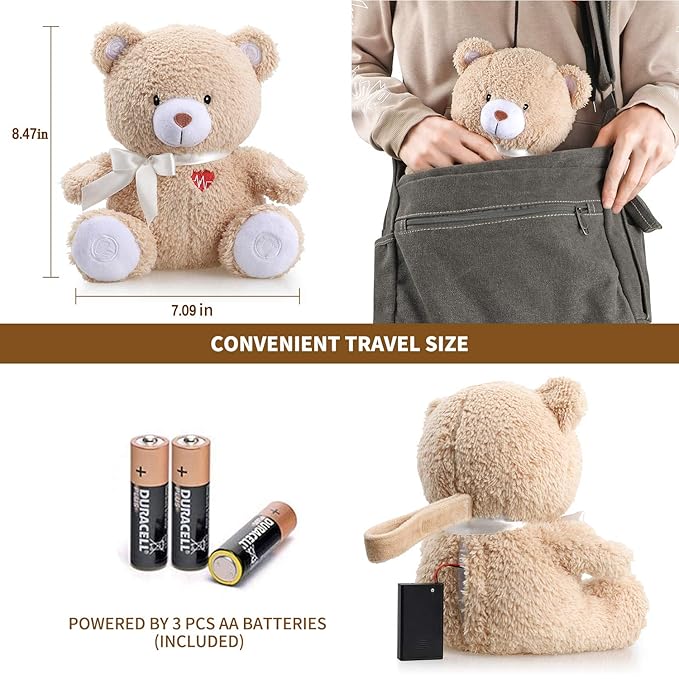 BEREST Baby Cry Activated Sleeping Aid Soother, White Noise Machine Infant Stuffed Animal Baby Gifts Bear Toy with Nursery Decor Night Light, Womb Heartbeat, 9 Soothing Sounds for Toddler Crib