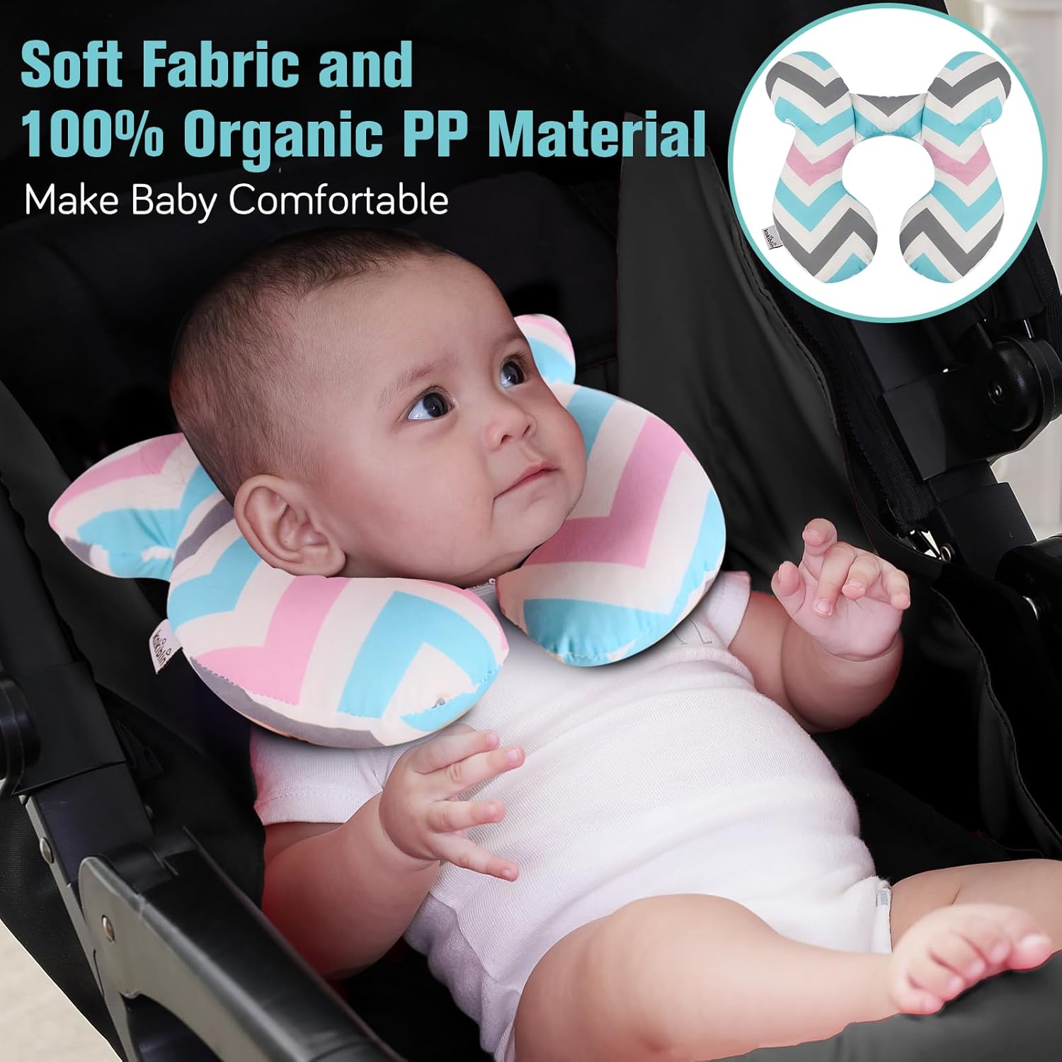 - U Shaped Design(upgraded): baby support pillow filled with more PP cotton for the two side which can provide a better support for baby’s head, and Reduce width of the neck support part which may not push baby's head to feel uncomfortable