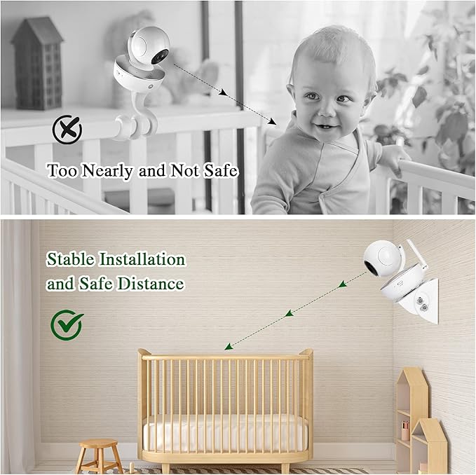 - FOLLOW INSTRUCTION MANUAL - Please install the wall mount for baby monitors. And you will get the bird's eye view of your baby through the competent monitor. You can also adjust the angle from 0 to 45 degrees