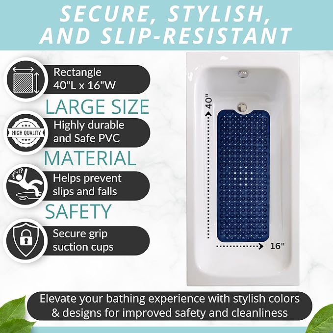 ENKOSI Bath Mat - Large Non Slip Bathtub & Shower Mat - Extra Long 40 x 16 Inch Bathroom Mats for Tub Nonslip Anti Slip Bathmats (40x16 Navy 1-Pack)