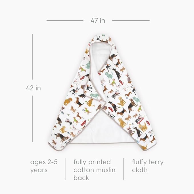 Little Unicorn Premium Hooded Bath Towel| Absorbent Cotton & Terry Blend | Larger Size, 1-6 Years (Woof)