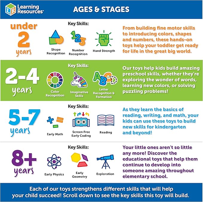- GIVE THE GIFT OF LEARNING: Whether you’re shopping for holidays, birthdays, or just because, toys from Learning Resources help you discover new learning fun every time you give a gift! Ideal gift for Halloween, Christmas, Stocking Stuffers, Easter Baskets or even for Homeschool.