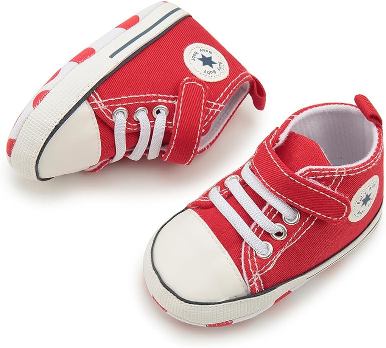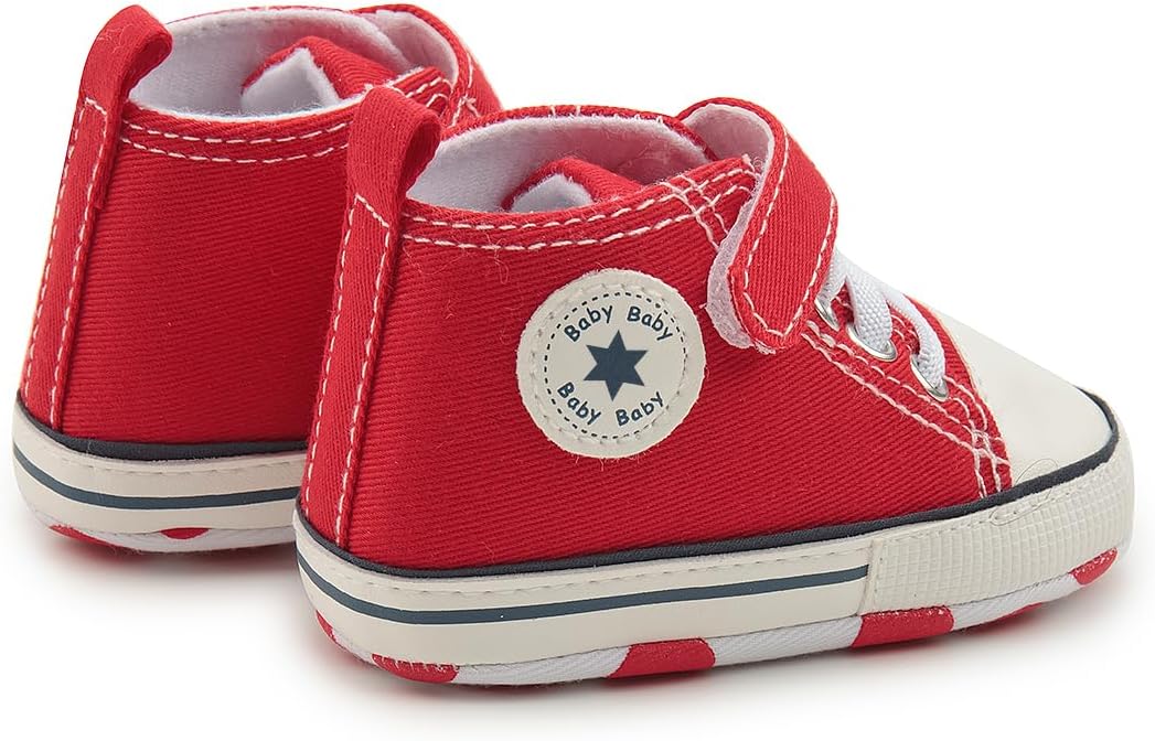 Meckior Baby Girls Boys Canvas Sneakers Soft Sole High-Top Ankle Infant First Walkers Crib Shoes
