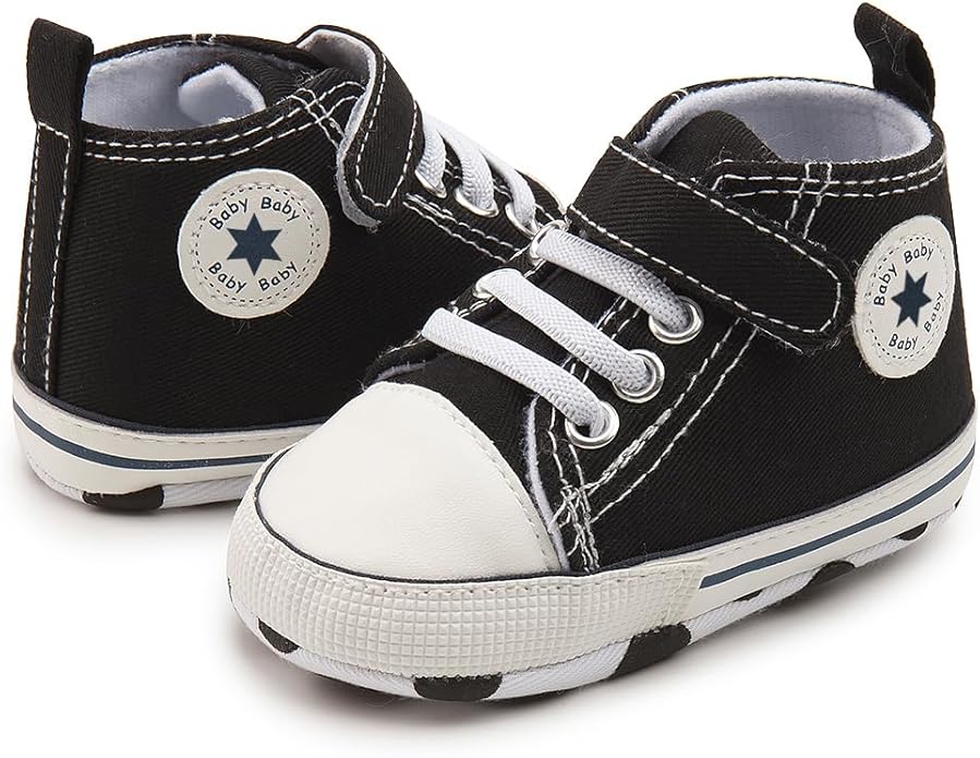Meckior Baby Girls Boys Canvas Sneakers Soft Sole High-Top Ankle Infant First Walkers Crib Shoes