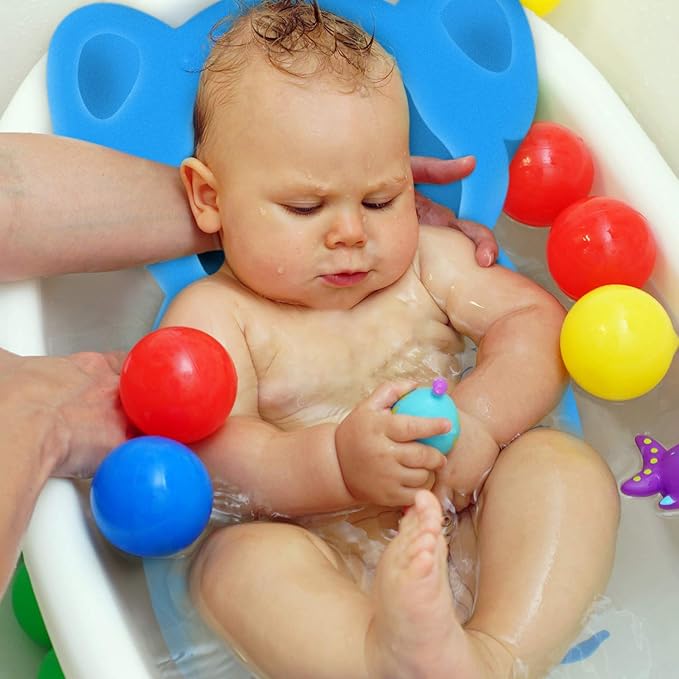 - Easy to clean and store:This baby bath seat is suitable for both hand wash or machine wash, and is super quick drying. With convenient hook to hang dry after each use for storage or travelling, perfect as baby shower gift.Suitable for most bathtubs, sinks