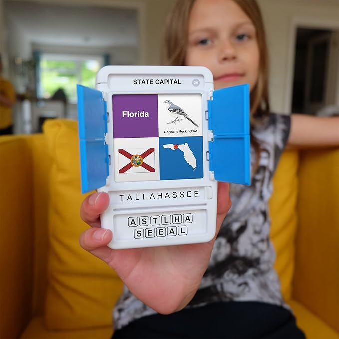 - CARD GAME: What is the capital of New York? Albany! Challenge yourself to learn all the US states and their capitals. Check out the anagram and open the four doors one-by-one to unveil the colorful question card. Make a guess and then slide to reveal the answer. Kids will have fun playing word games with 100 PICS!