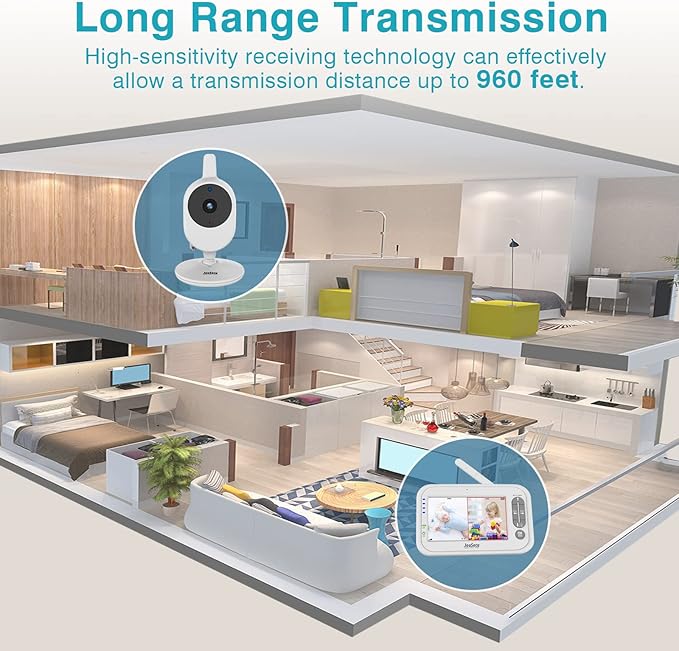 - 【Soothe & Comfort Your Baby】Unlike some one-way audio options, our baby monitor features two-way talk through a built-in intercom. Comfort your baby with your own voice. It has ULTRA-LONG RANGE of up to 1000 feet open space. When you go too far, you’ll get extra peace of mind of receiving out-of-range warning.