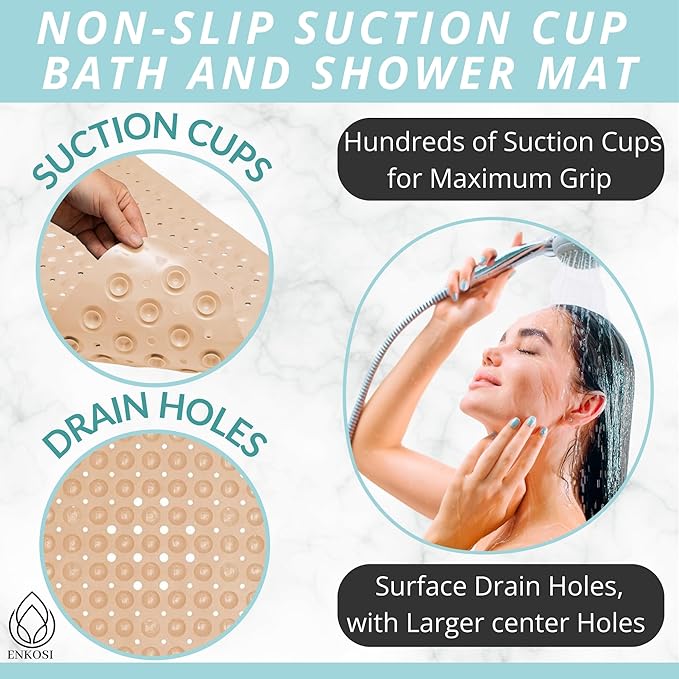 ENKOSI Bath Mat - Large Non Slip Bathtub & Shower Mat - Extra Long. 40 x 16 Inch Bathroom Mats for Tub Nonslip Anti Slip Bathmats (40x16 Beige 1-Pack)