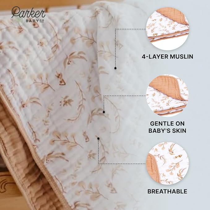 - BUTTERY SOFT & BREATHABLE MUSLIN COTTON - Crafted with 4 layers of 100% pre-washed muslin cotton, this muslin baby blanket is soft from day one-and only gets softer with each wash. Gentle on sensitive skin and breathable for year-round comfort, our muslim baby blanket is a cozy favorite for naps, bedtime, and everything in between.