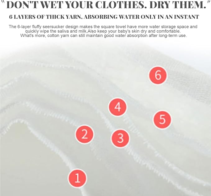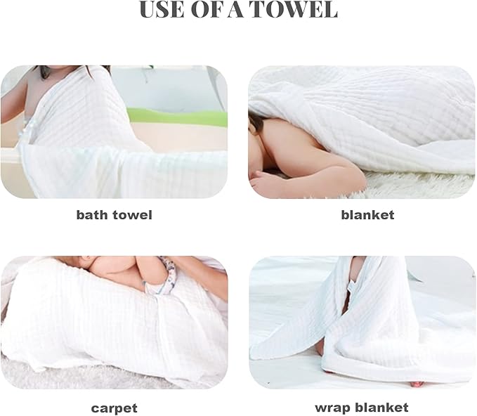 - 6-layer Embossing Design: The super soft water absorbent Muslin Towels for Baby adopts 6-layer honeycomb embossing design, with dense mesh and delicate hand feeling. It is most suitable for the baby's delicate skin. The water absorption speed is faster than the traditional baby bath towel.