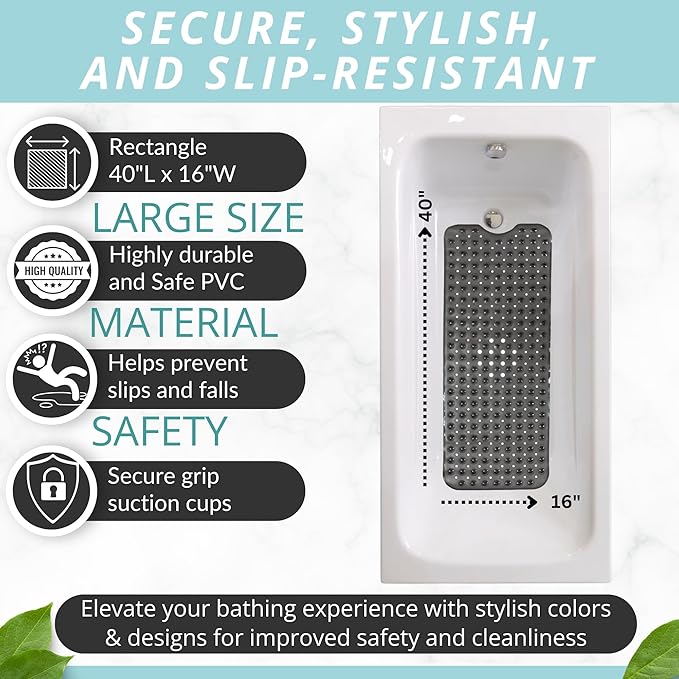 ENKOSI Bath Mat - Large Non Slip Bathtub & Shower Mat - Extra Long 40 x 16 Inch Bathroom Mats for Tub Nonslip Anti Slip Bathmats (40x16 Charcoal 1-Pack)