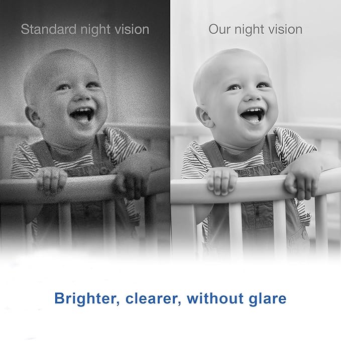 - [UPGRADED BATTERY} 5" HIGH-RESOLUTION LCD SCREEN WITH UP TO 12 HRS BATTERY LIFE] Clearly see every little detail of your baby right from the high resolution 5-inch parent unit. Continuously monitor up to 12 Hrs. on video mode and 21 Hrs. on audio mode with single battery charging. The screen can be switched off and monitor on audio only mode. SOUND ACTIVATED FEATURE: Screen is automatically switched on when noise is detected.