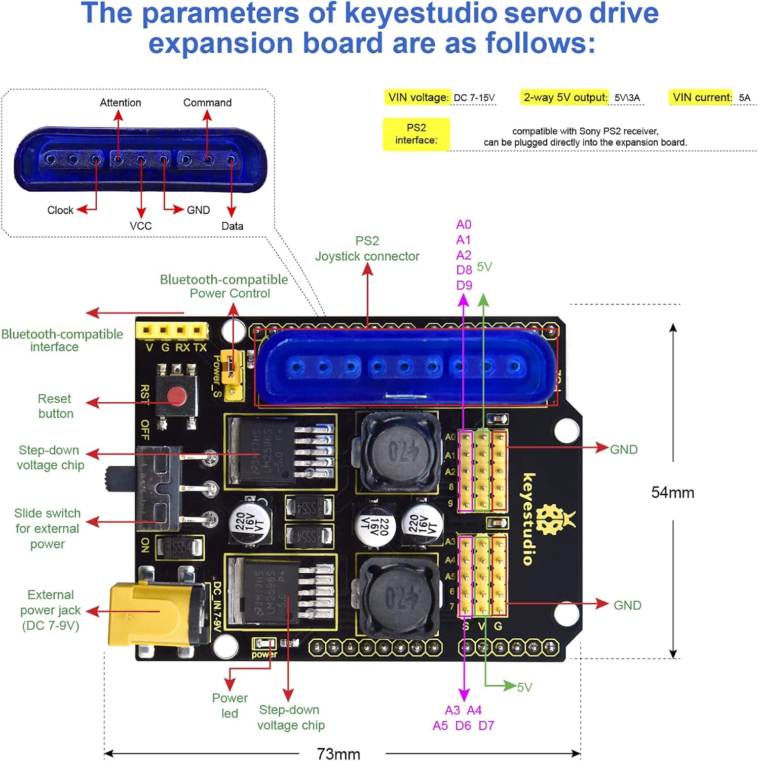 - 3 control methods- JoyStick modules included control; Remote Control; Btmodule and APP compatible with Android/iOS are provided. Wireless PS2 Control (Note: Wireless PS2 controller is not included, we only provide sample code and instructions )