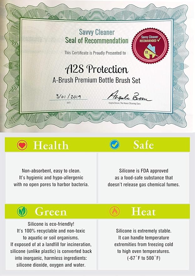 - Safe Cleaning – Our 100% BPA-free, food-grade silicone brushes for cleaning narrow neck bottles, glasses, and plastic are safe for hot cleaning (up to 140°F). The A-Brush can be washed in a dishwasher or with boiling water. Lightweight and microwave safe, our premium bottle washers deliver a consistent and high-quality clean. We are a US-based company with superior customer service, any questions or problems, please message us, and a member of our team will get back to you right away